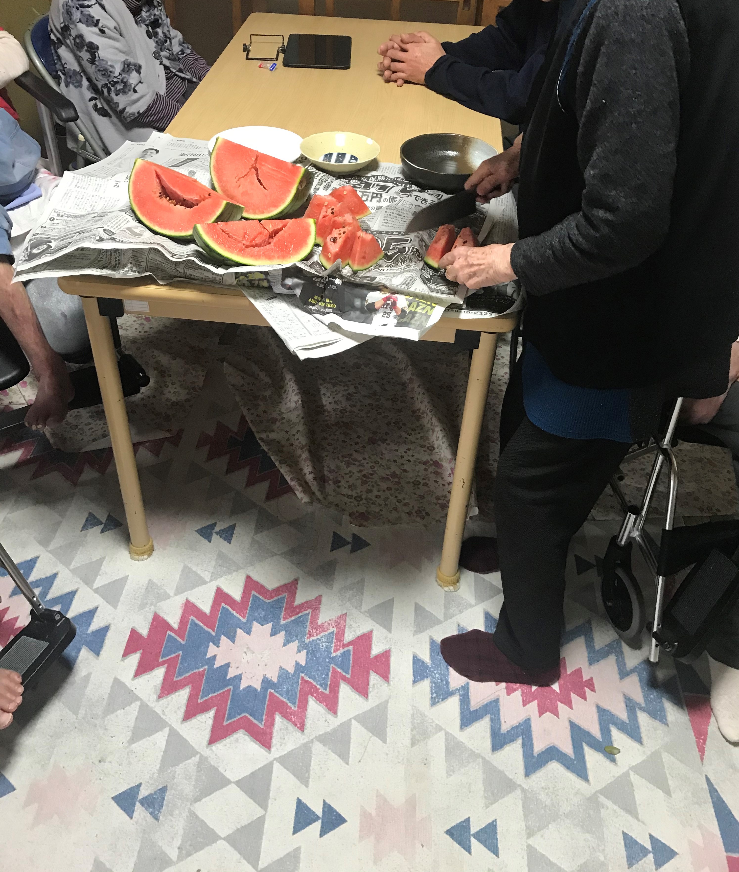 デイサービスりんでは男性の将棋ブームが起きています。優勝者にはお菓子の詰め合わせセットです。職員が間に入り全員が参加されています。元アマ2段のご利用者が優勝されました!